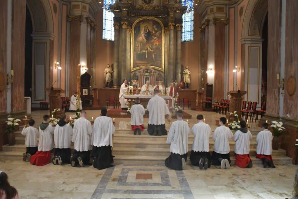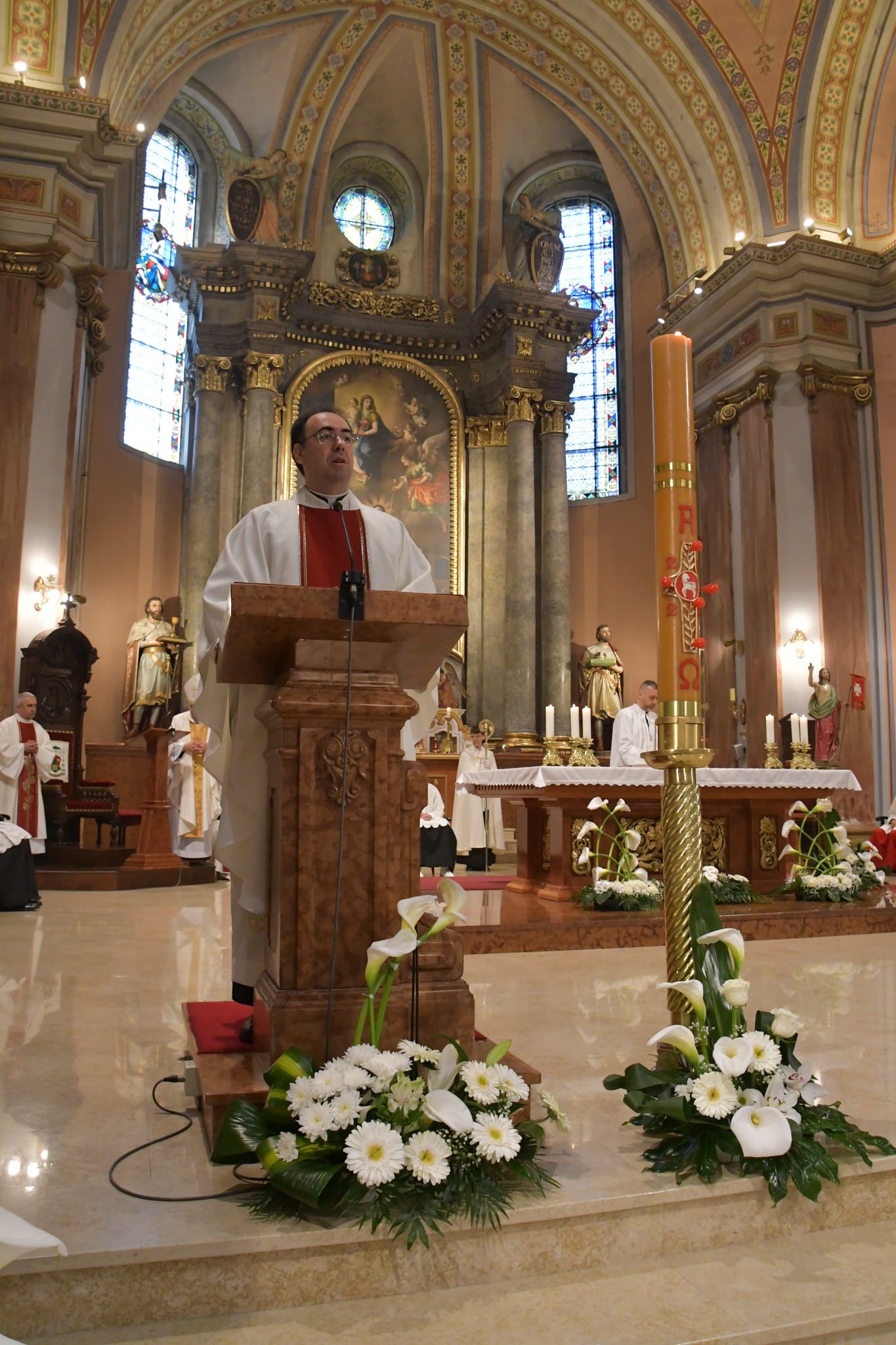 U subotičkoj katedrali svečano uskrsno slavlje predvodio je biskup Franjo Fazekas u zajedništvu s katedralnim župnikom preč. Daraganom Muharemom, župnim vikarom Mester Imreom, starim župnikom mons. Stjepanom Beretićem, stalnim đakonom Ferencom Sótanyjem, te uz asistenciju tajnika, preč. Dražena Skenderović.