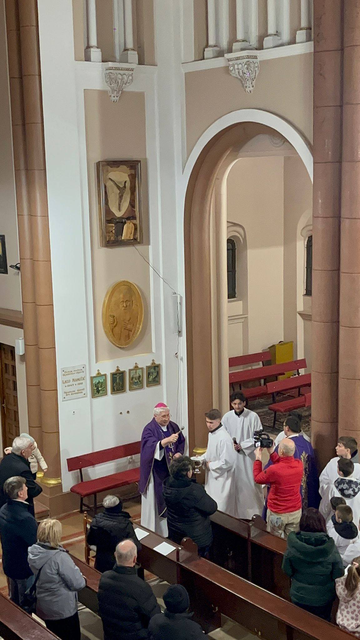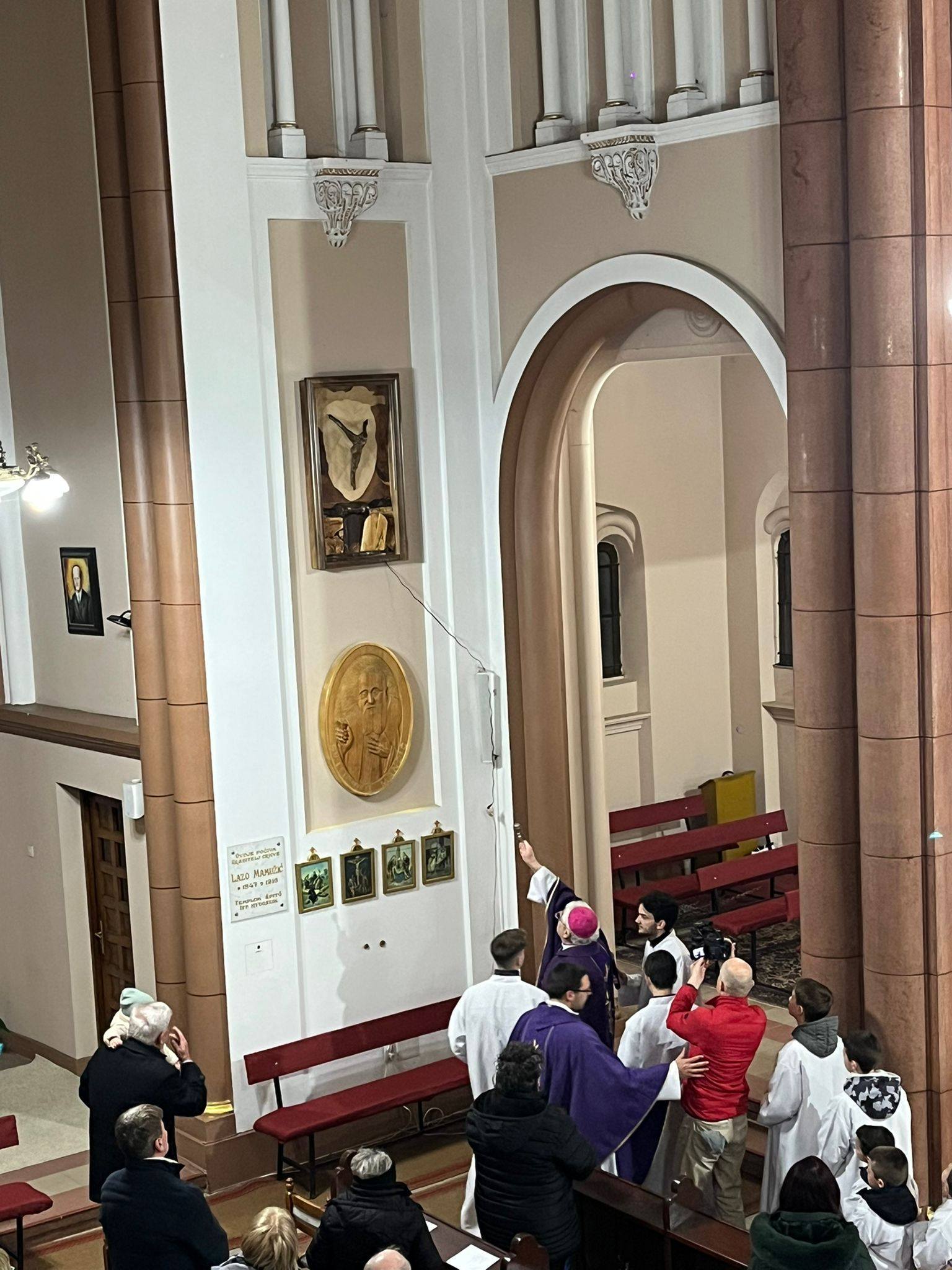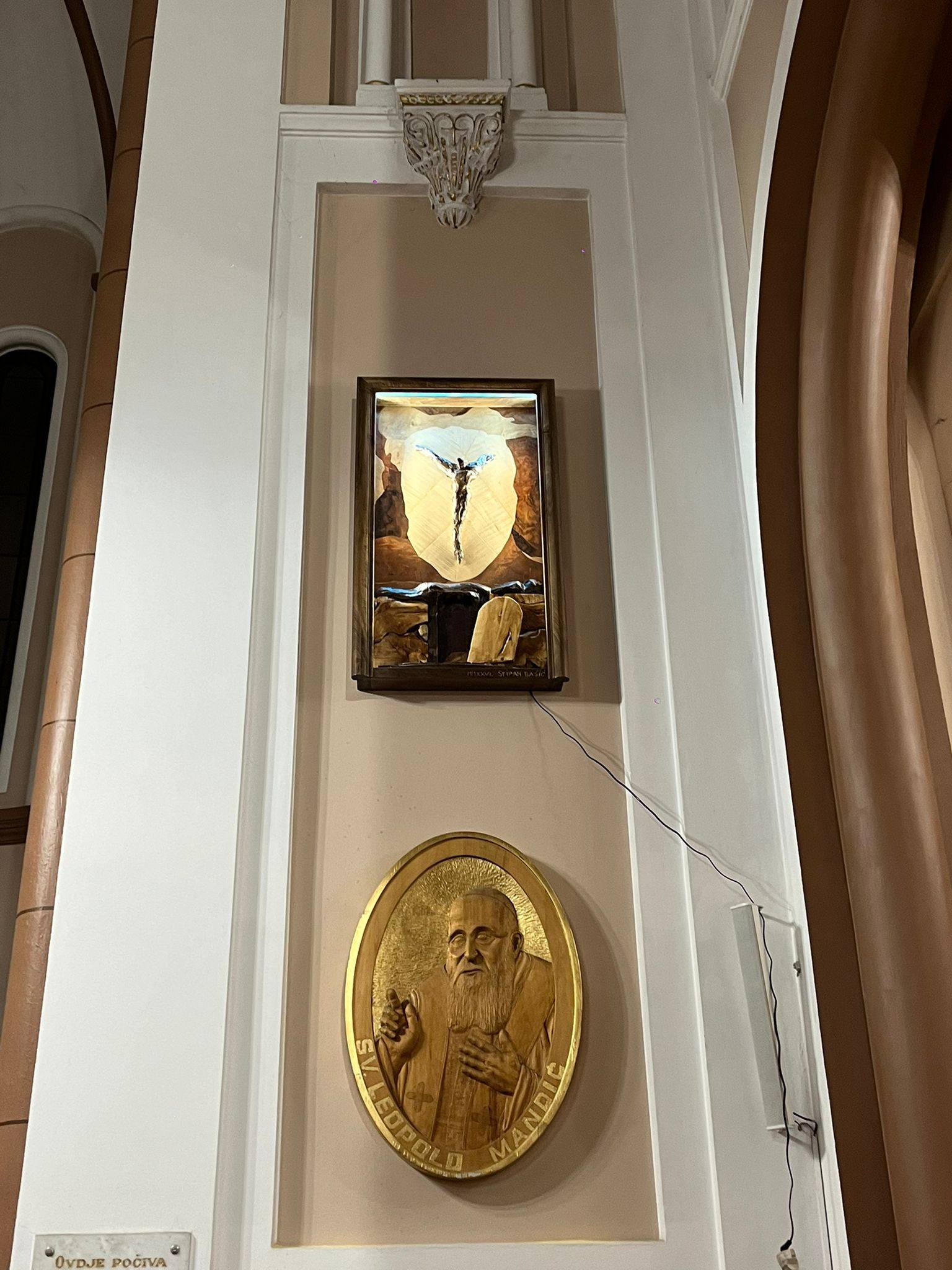 Különleges pillanat következett a szentmise végén, amikor a püspök megáldotta a neves mester, Stipan Bašić új művészeti alkotását. Egy kifejező, fából készült ábrázolásról van szó, amely a keresztény hit központi titkait egyesíti:
